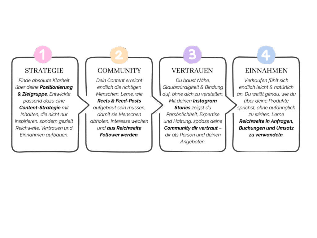 ✨ Reels & Feed-Beiträge, die deine Zielgruppe in den Bann ziehen, deine Brand sichtbar machen und dir Stück für Stück eine Followerschaft aufbauen (das lernst du in Community Boosthier klicken und Platz buchen)